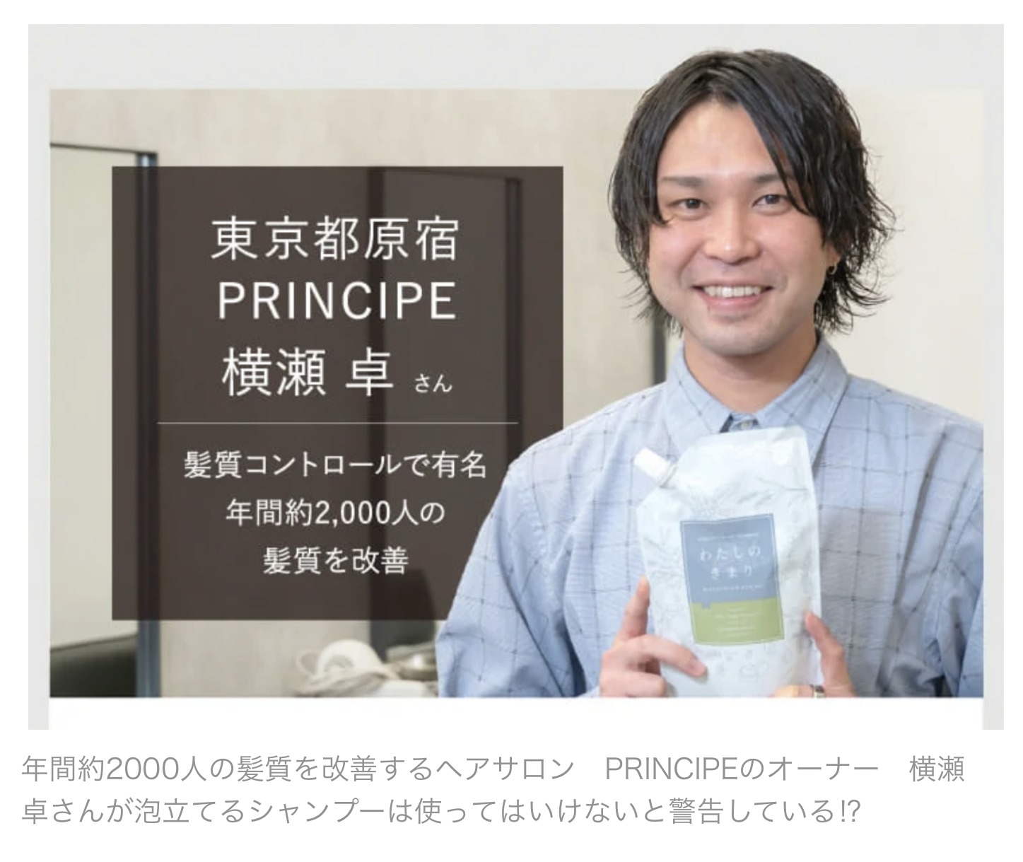 年間約2000人の髪質を改善するヘアサロン PRINCIPEのオーナー 横瀬 卓さんは次のように説明する。